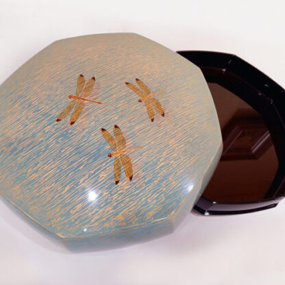 少年の頃、夏が来れば水辺を旋回して飛び回るギンヤンマを追いかけていました。作品制作にあたり、その同じ場所で取材をし、また、新しい発見はないか、少年の頃と違う目線も意識しました。そうして発見したのが、水面に映るギンヤンマの影でした。この表現により、漆の平面が立体となって、自分が感動したことをより表現出来たと思います。